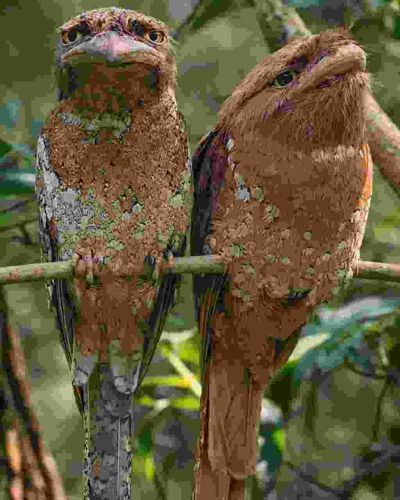 Often mistaken for owls, these are nocturnal birds with wide, frog-like mouths, large yellow eyes, and a stocky build. They are famous for their 'stump-like' defensive posture.