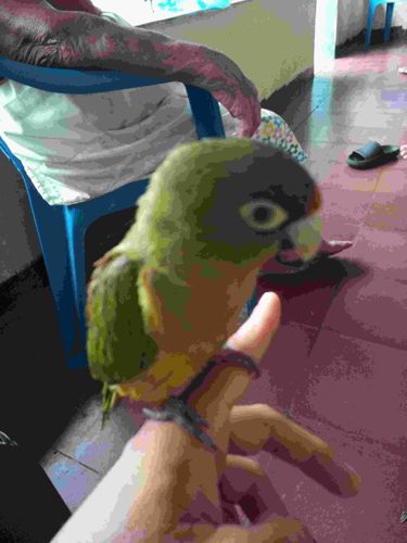 A small, social parrot roughly 18 cm long with a short, pointed tail and a heavy, horn-colored beak. They are known for their high-pitched, screeching calls and energetic flight.